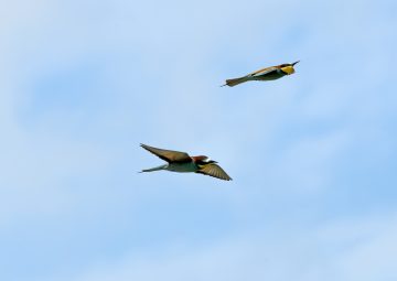 Il y a quelques jours, alors que j’étais caché derrière un tamaris avec juste une cagoule sur la tête, un guêpier est venu se poser sur une branche d’arbre, à côté de moi. Il était vraiment sur le côté, si près qu’il était limite zone de mise au point. Si