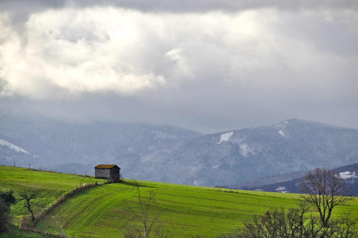 belle composition du champs à la cabane, un petit traitement des contreforts du Pilat pourrait les rendre plus présent .