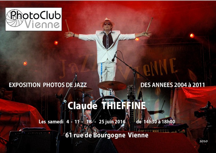 Actualités des membresActualités du club EXPO DE PHOTOS DE JAZZ PCV 2016-06-13 13 Juin 2016 PCV 0 2.8k 0 Une nouvelle expo de photos de jazz, rétrospective de 2004 à 2011 par Claude THIEFFINE , dans les locaux du Photo Club de Vienne, 61 rue de Bourgogne à Vienne. Elle sera encore visible les samedi 18 et 25 juin de 14h30 à 18h.