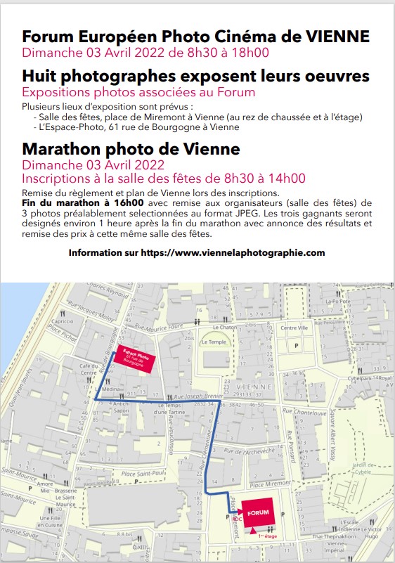A l’occasion de cette nouvelle édition 2022 un marathon photo sera organisé dans les rues de Vienne et huit photographes exposeront leurs œuvres dans trois lieux à Vienne.