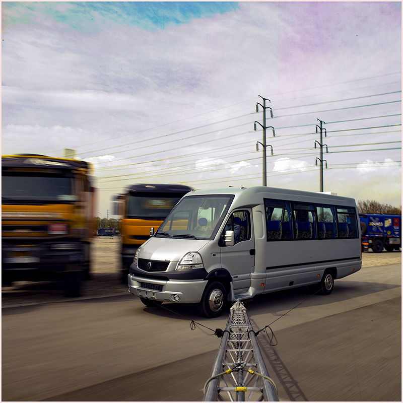 – Le RIG un mat que l’on fixe sur un véhicule » Camion-Autobus-Voiture Etc… pour réaliser un Filé réel , ensuite il effacer le mât pour avoir le véhicule roulant « net » avec un filé du paysage.