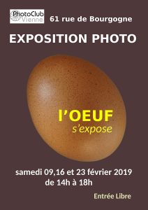 Actualités du club Nouvelle Expo au Photo Club de Vienne Admin DURAND 2019-02-05 05 Fév 2019 Admin DURAND 0 1.5k 0 Nouvelle expo-photo au Photo Club de Vienne sur le thème “L’Oeuf s’expose” à l’Espace Photo 61 rue de Bourgogne à Vienne qui sera ouvert les samedis 09,16 et 23 février de 14h à 18h Tags:oeuf