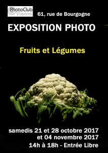 Une nouvelle expo photo débute ce samedi 21 octobre de 14h à18h au local du Photo Club de Vienne, 61 rue de Bourgogne à Vienne. Sur le thème des Fruits et Légumes.