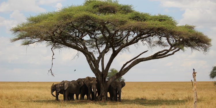 un penchant pour le troupeau d’éléphants sous l’arbre…