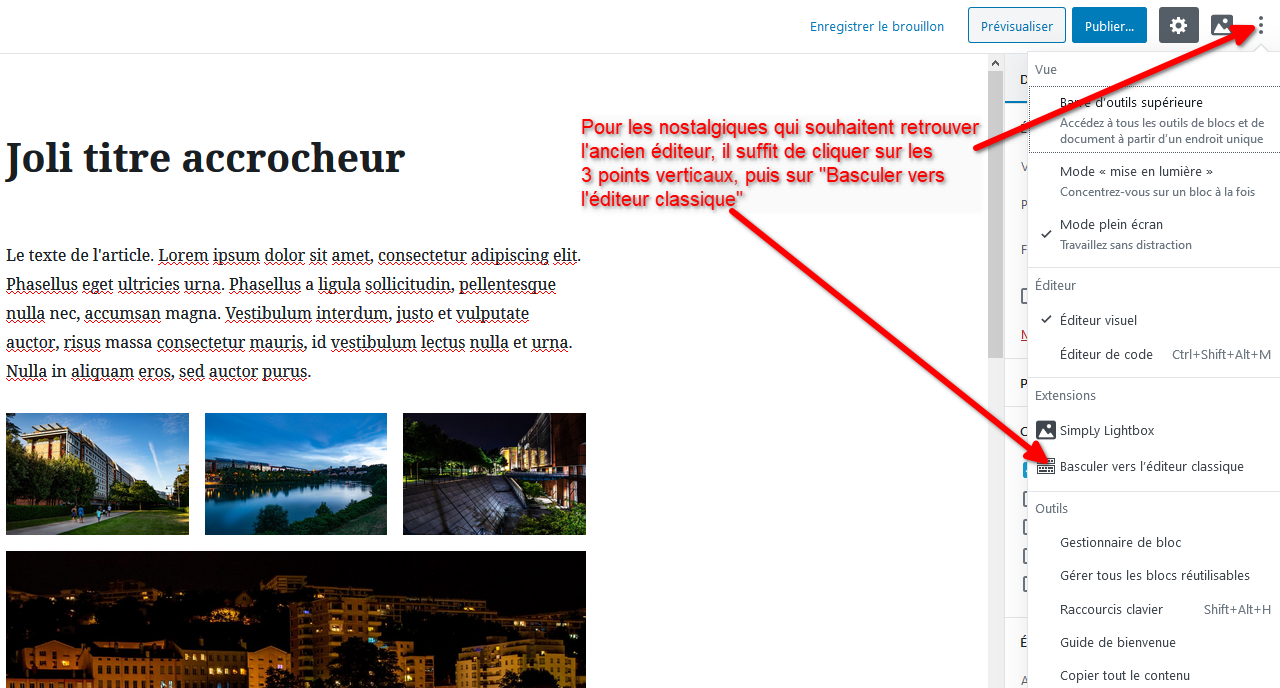 Voici une petite aide à la publication pour ceux qui ont du mal avec le nouvel éditeur de WordPress « Gutenberg » 😉